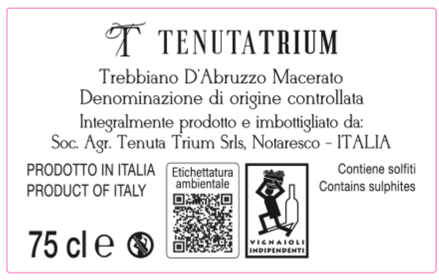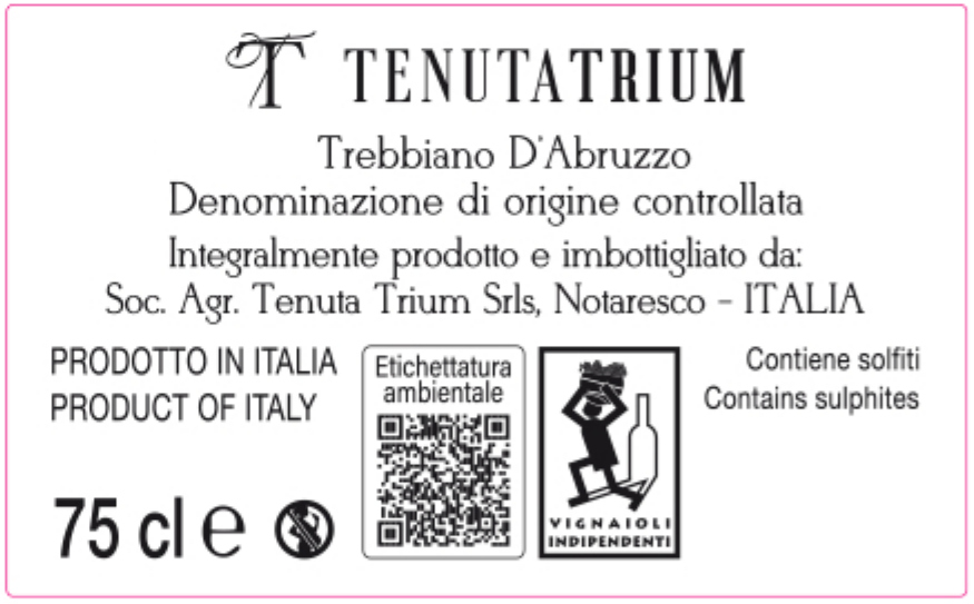 100% Trebbiano d’Abruzzo DOC su pergola abruzzese età 50 anni. Gradazione 12,5°.